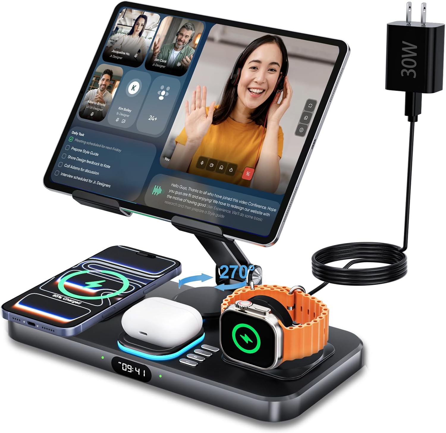 Perfectly design for the people who in the Apple ecosystem, easy to charge your Phone, Apple Watch and Earbuds simultaneously. Support for 17/16e/16/15/14/13/12/11 PRO/Pro Max/Plus/Mini Series/XS/XR/XS MAX/X/ iPhone Air and other Phone with wireless charging function, support for AirPods Pro3/2/Pro/4/3/2, Only Support for Apple watch11/10/9/8/7/6/5/4/3/2/SE/Ultra/Se 3, It also comes with a Type-C charging cable, which can be connected to the charger to charge your iPad.